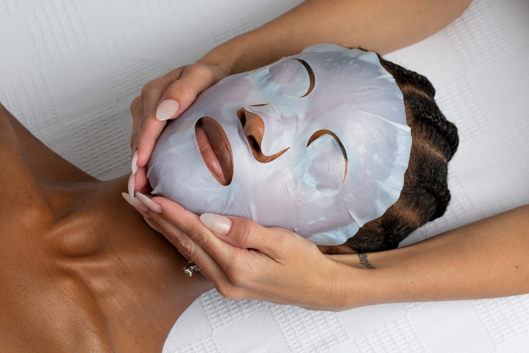 For this circumstance, The Biocellulose Sheet Mask is used for instant or emergency skin repair if skin is to become irritated, burned, inflamed. it can be due to an allergic reaction, or from recently being given a professional skin treatment. The sheet mask itself is is made from Biocellulose fibers (derived from plant fibers like coconuts). The fibers create a gel like layer that sticks to you as if it is another layer of your skin. The fibers were originally used in the burn victims unit in the ICU unit of the ER. This beloved mask is highly effective, & provides proven rapid results (check out our before an afters for proof!) Our Estheticians rely on these sheet masks in the office.